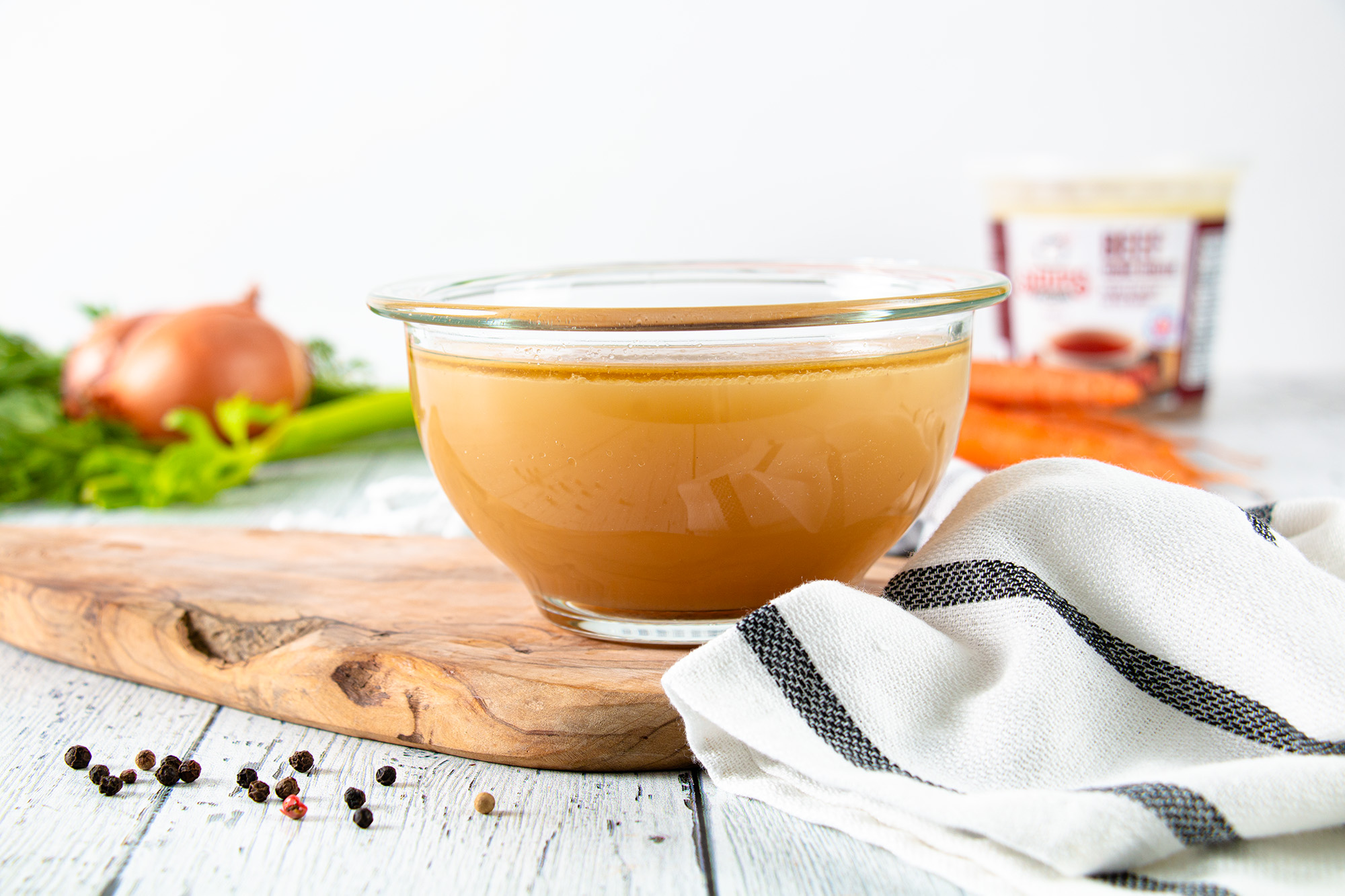 Ingredients: Grass-fed Beef Bones, Spring Water, Carrot, Onion, Celery, Apple Cider Vinegar, Bay Leaves, Peppercorns, Olive Oil