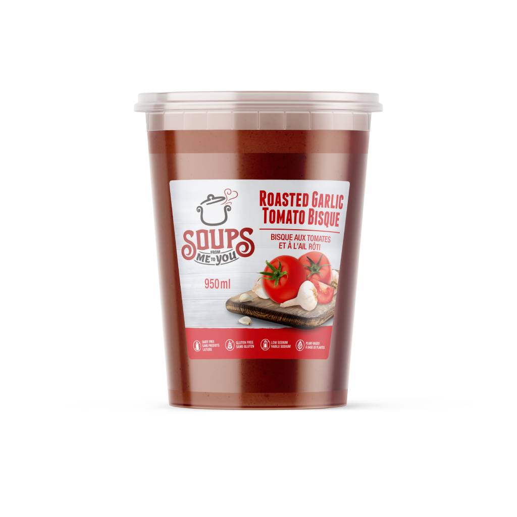This creamy tomato bisque blends roasted garlic and crushed Ontario tomatoes for a rich taste – without the use of dairy!